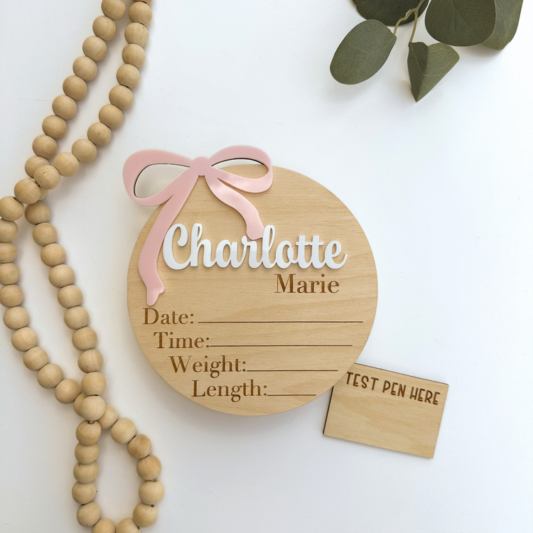 These wood baby birth announcements provide the perfect way to celebrate the arrival of your new bundle of joy! Featuring unique and modern designs, this collection includes a variety of personalized wooden birth announcements that are laser-engraved with the name of your little one and space to write in their birth statistics, creating both a special keepsake and the perfect newborn photo prop!