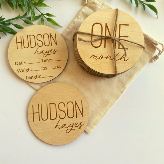 The Hudson Hayes font duo consists of a thin sans serif font paired with a flowing script. The bold and flowing design creates a visually pleasing engraved look that complements a wide range of our baby products.