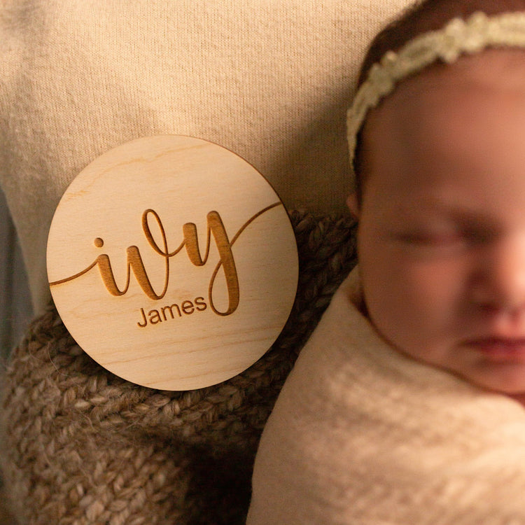 The Ivy James font is a perfect combination of playfulness and modernity. Its bouncy curved letters with tails extending at each end of the name, combined with a sleek sans serif font, create an eye-catching design that is stylish yet fun. This makes the font an ideal choice for our baby products such as name cards, milestones, and footprint signs.