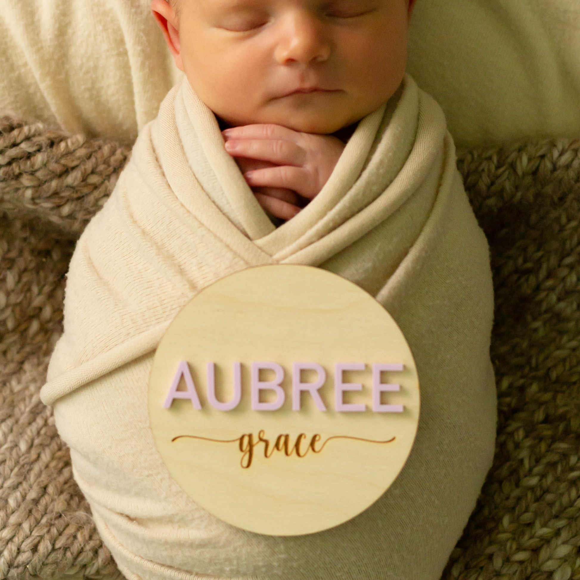 Introducing the Aubree Grace name sign, the perfect way to announce your baby's name to the world! Our customizable name sign features a classic 3D style for the first name, printed in a capital font in, and the second name in an elegant script font. With a wide variety of colors to choose from, you can create a sign that perfectly matches your style.