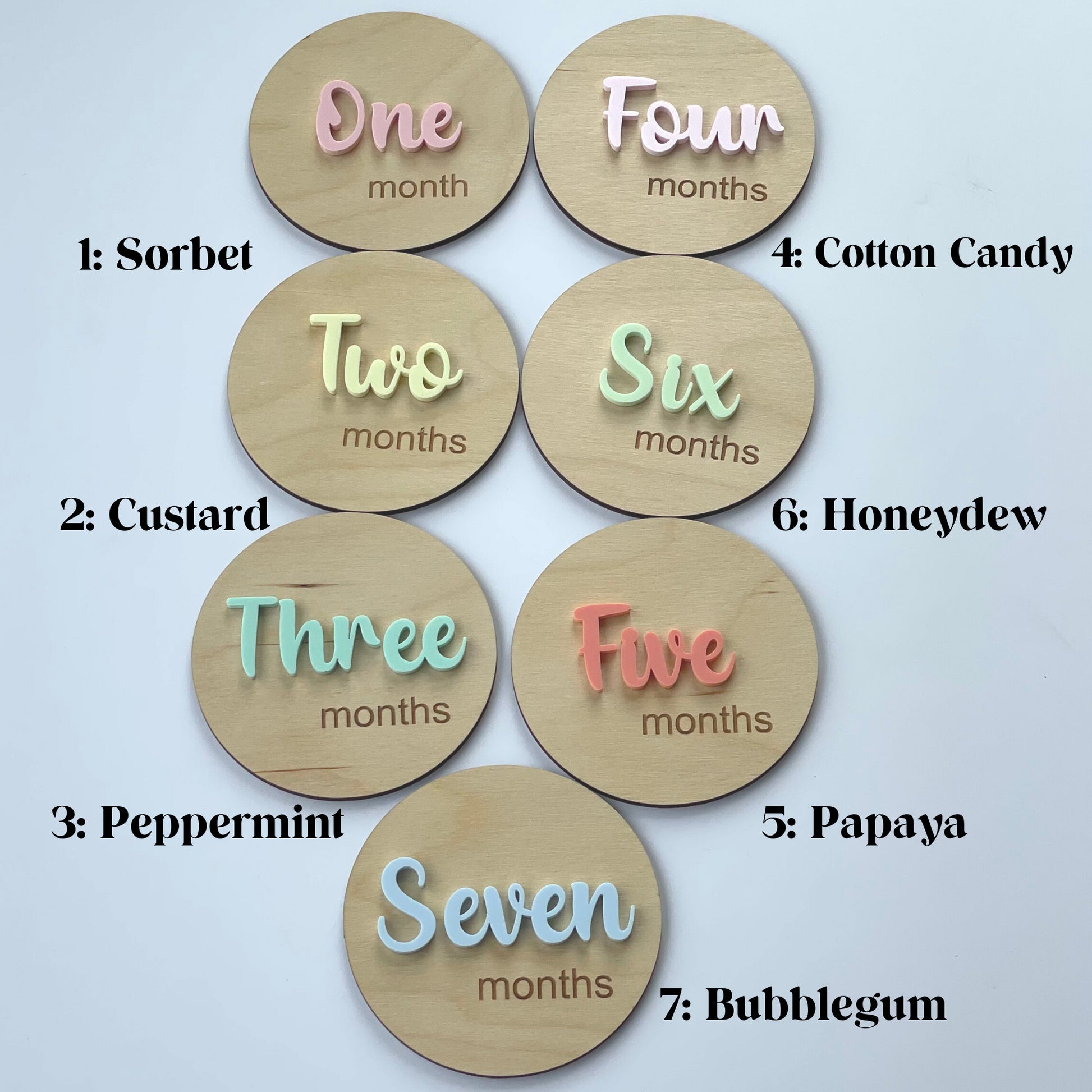 ~Your choice of colors or a mixed color set (mixed color sets will be an equal mix of colors shown, the color of the specific months may vary from the picture but will include all colors unless requested otherwise. If you would like all milestones in one color or a specific color for “Hello World” Please indicate it in the personalization box.