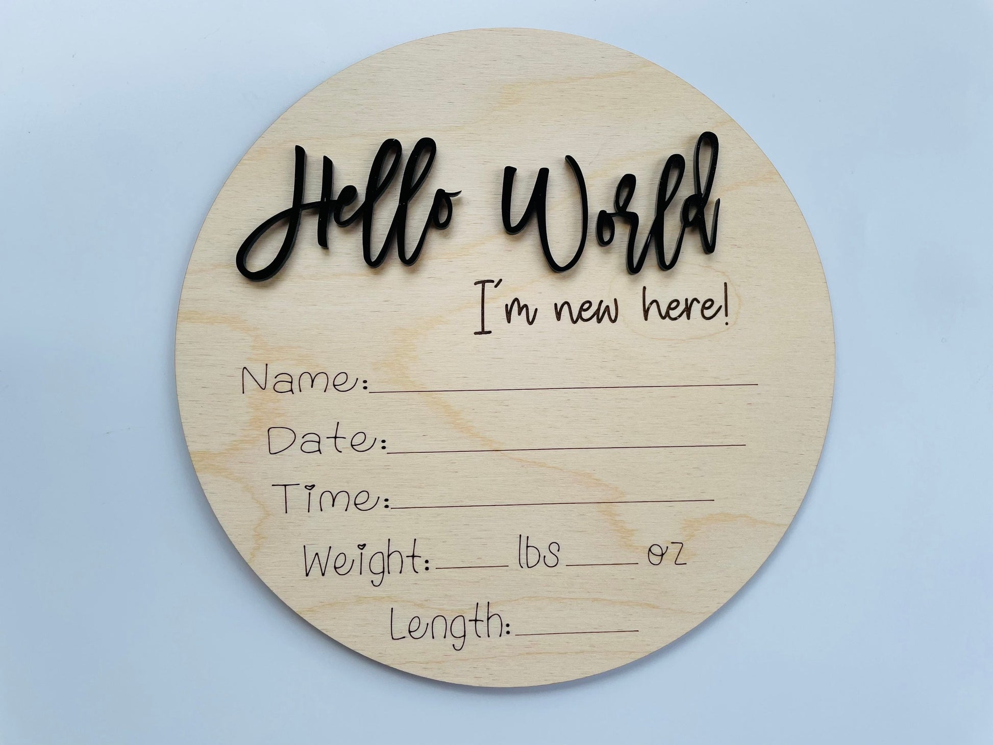 - Says “Hello World” at the top with space to write in baby’s birth statistics