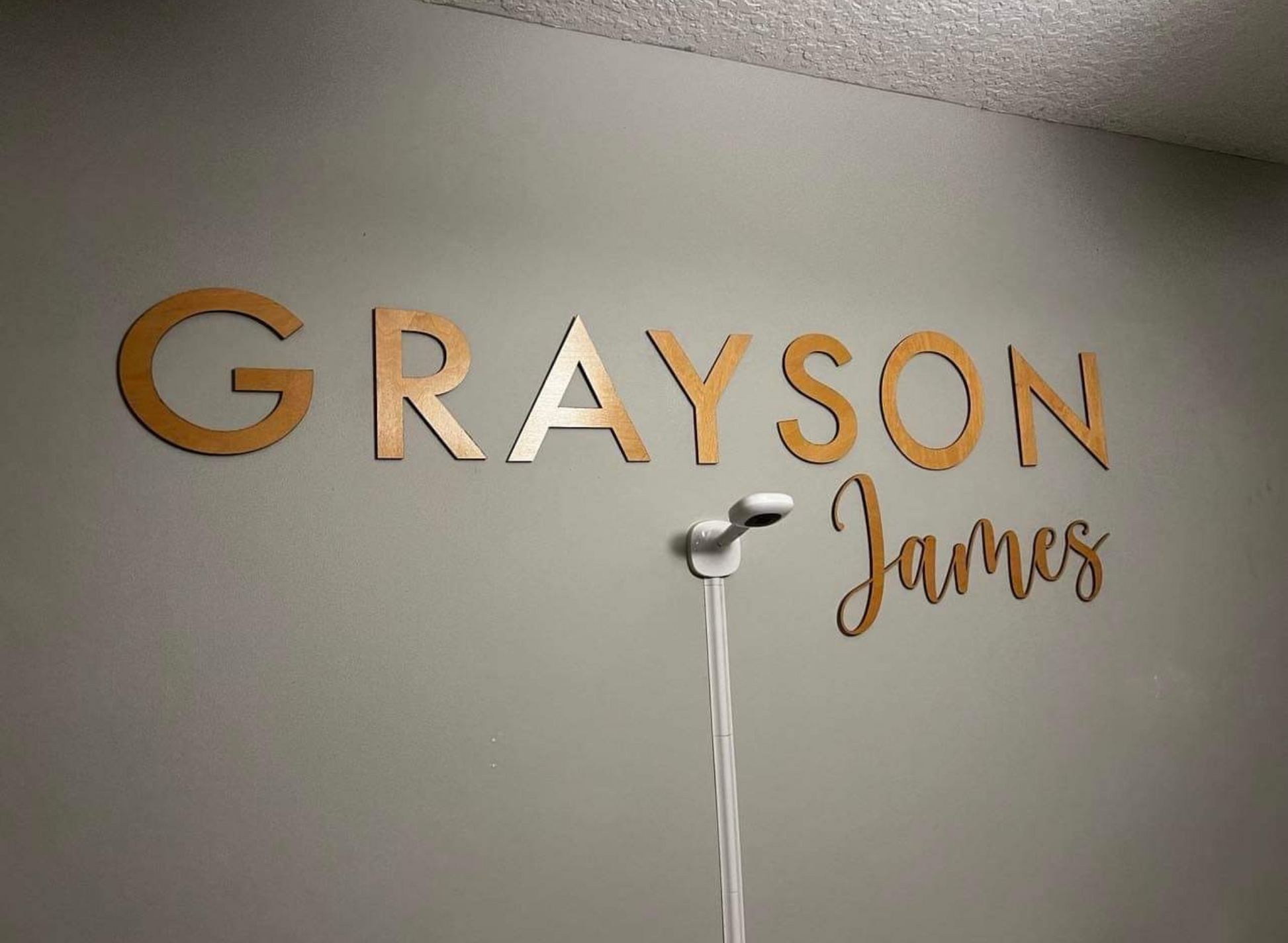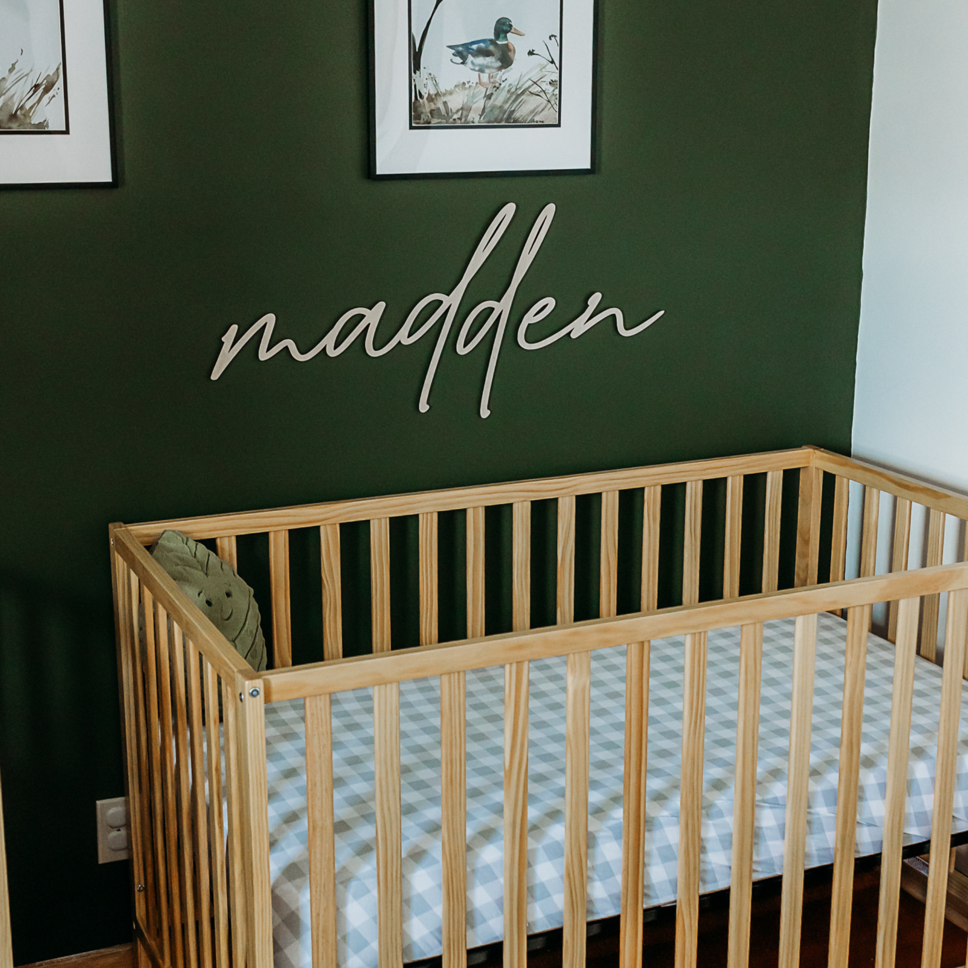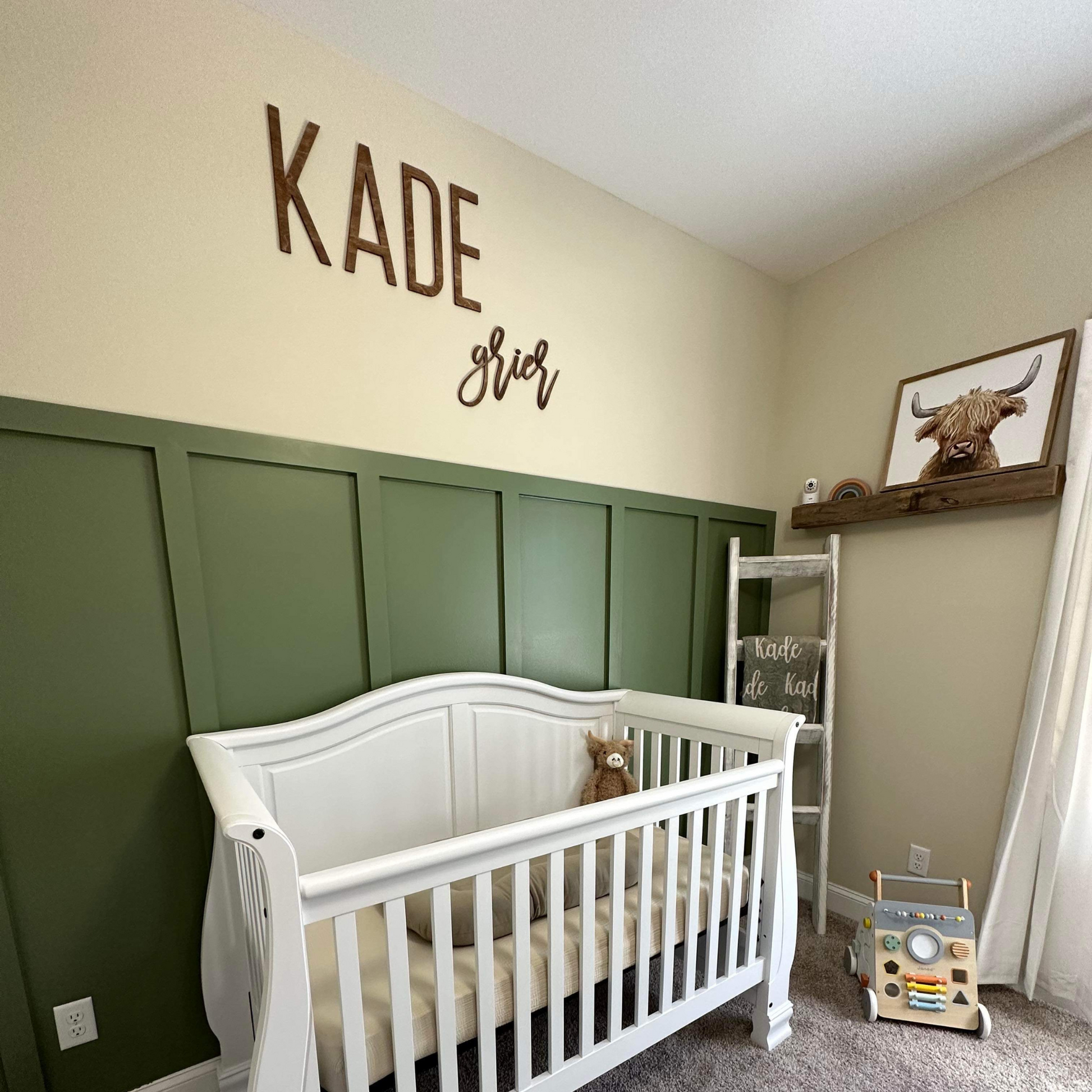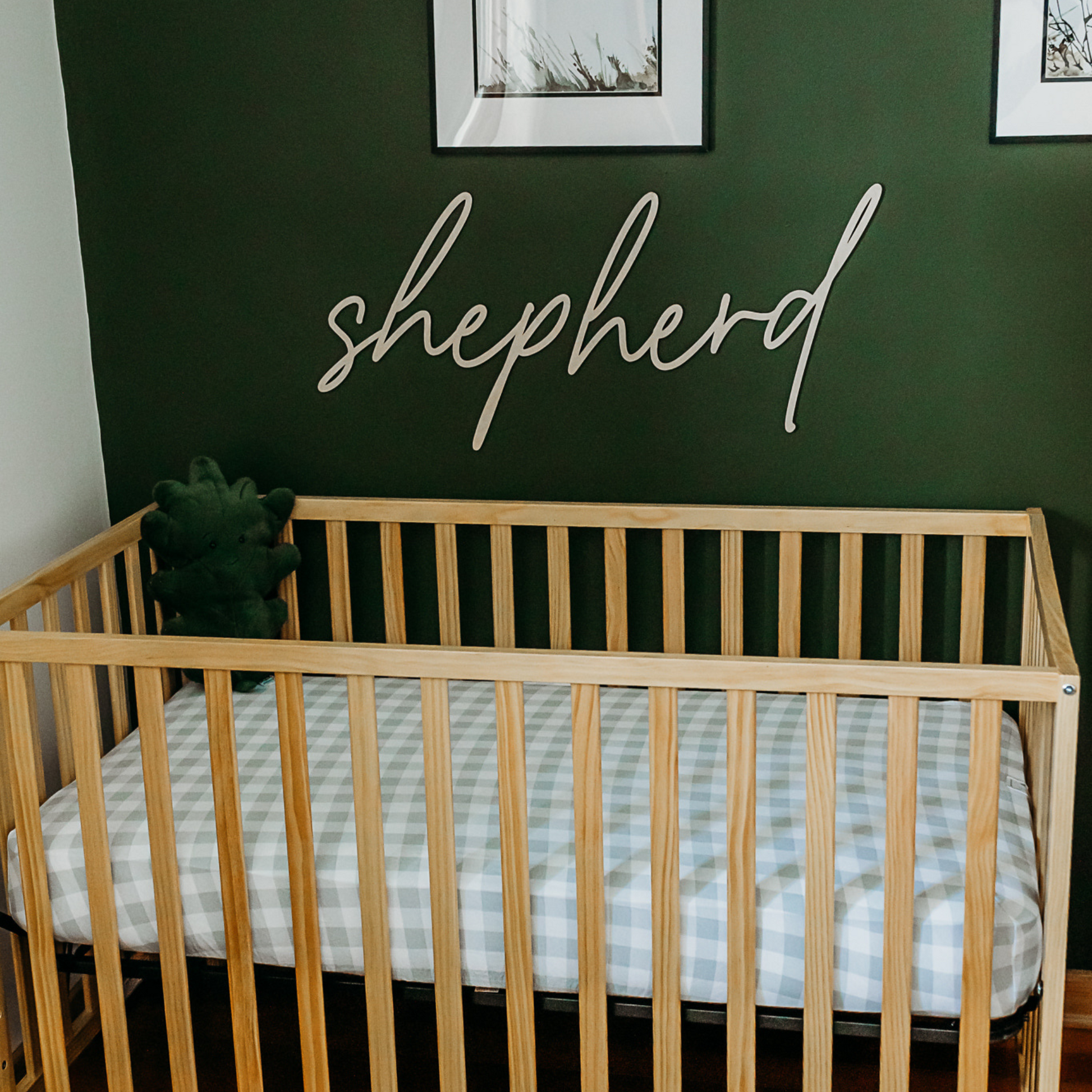 Introducing our custom baby name sign, perfect for adding a personal touch to any nursery wall. Measuring 36 inches in length, this sign is designed to showcase your baby's name in a stylish and unique way. The height of the sign will vary depending on the length of the name, ensuring a customized fit for your little one's special space. Made from high-quality materials, this sign is both durable and long-lasting, making it the perfect keepsake for years to come.