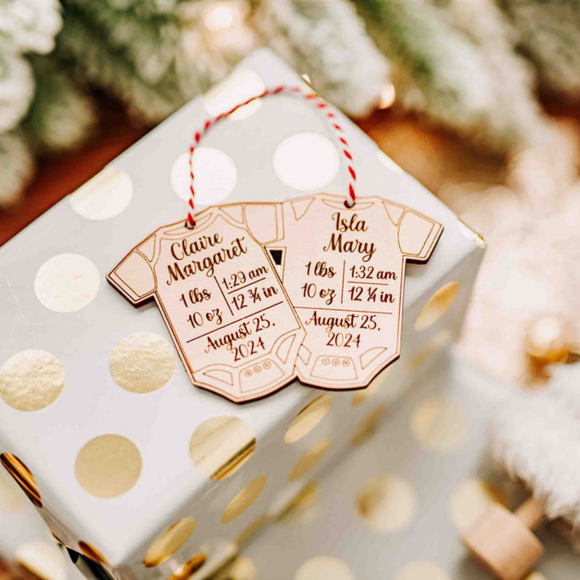 - Laser engraved with the baby's name, date of birth, time, weight, and length.