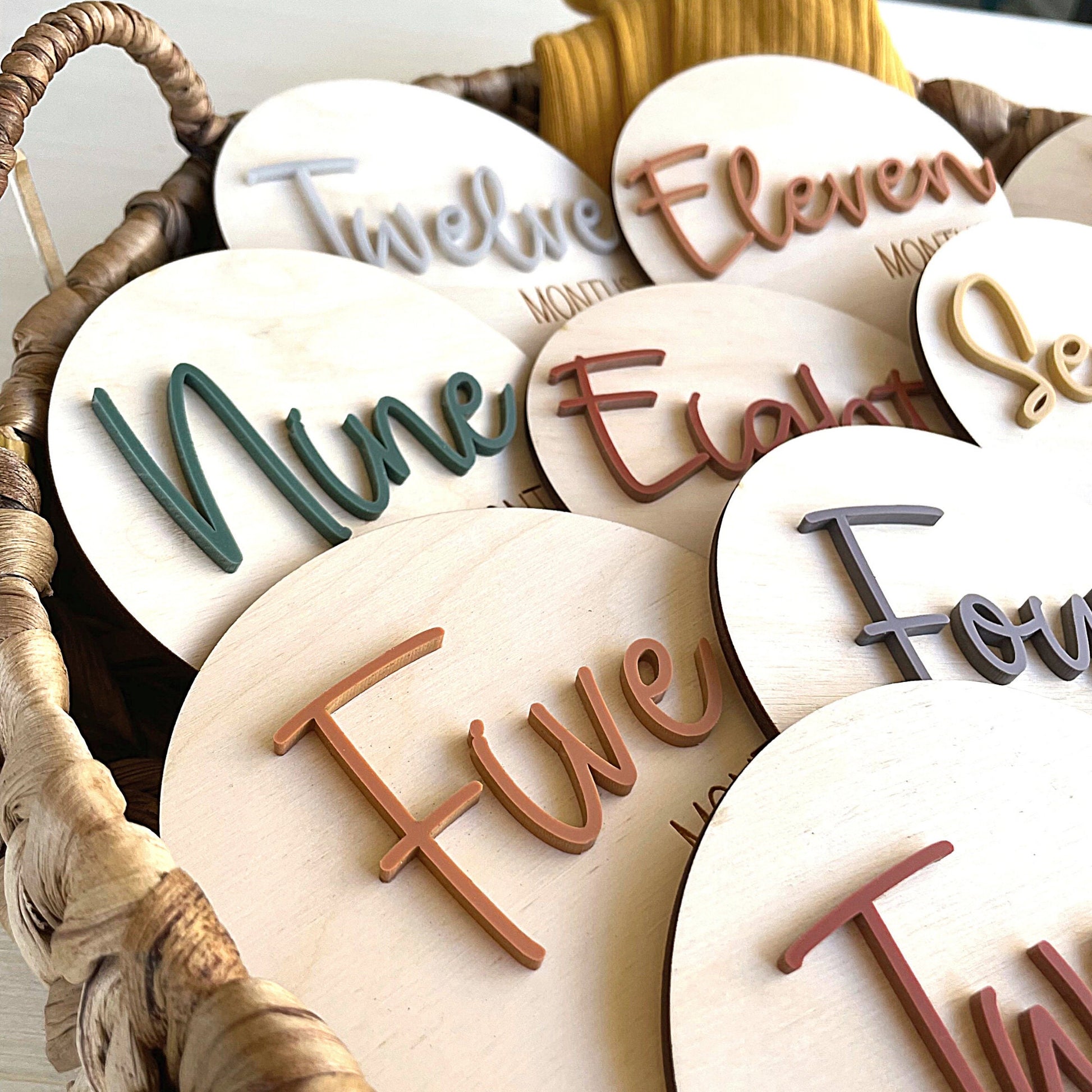 ~Baby Name card. The first name will be in an acrylic color of your choice, the middle name will be engraved. Fonts will match the fonts of the milestone set. Mock ups are available upon request.
