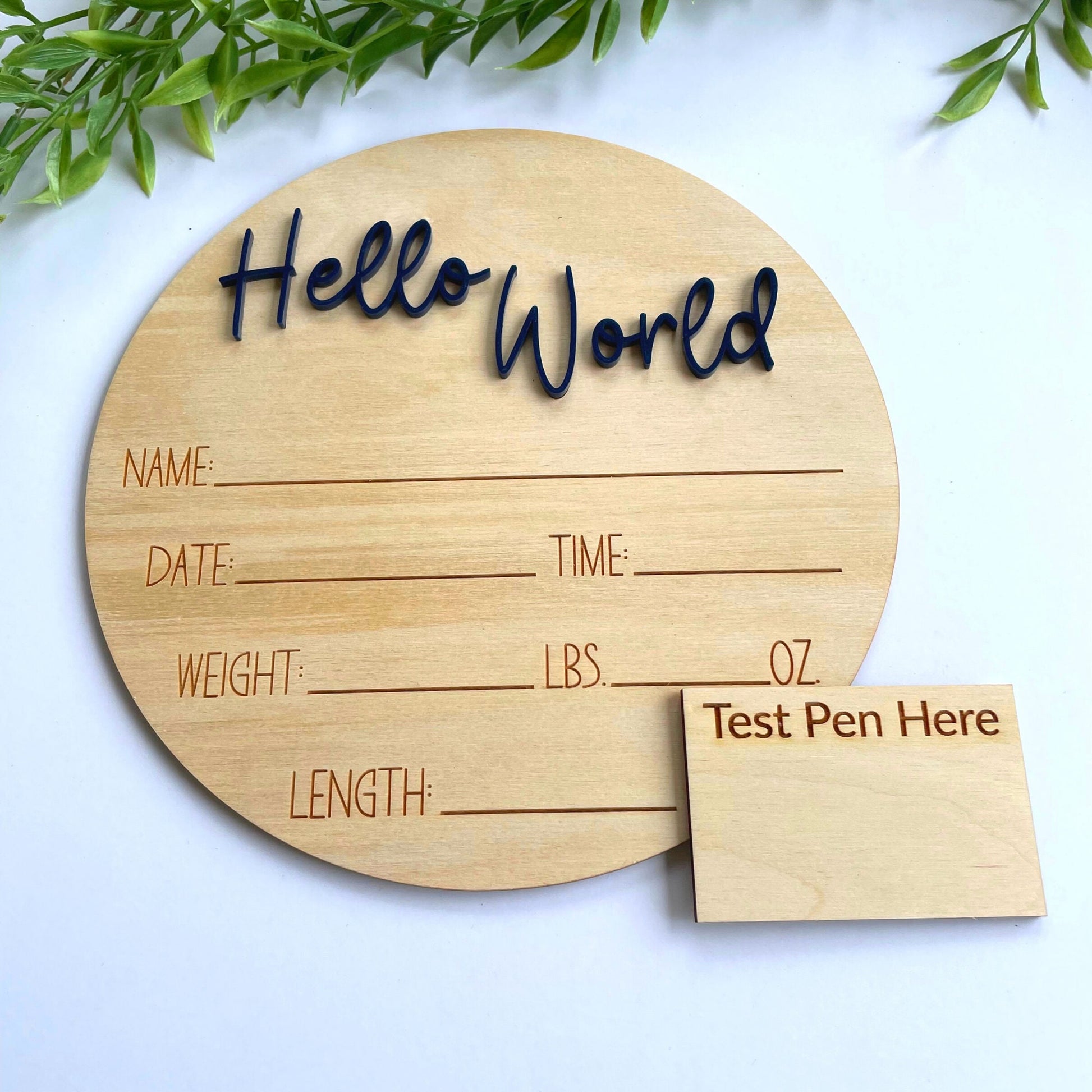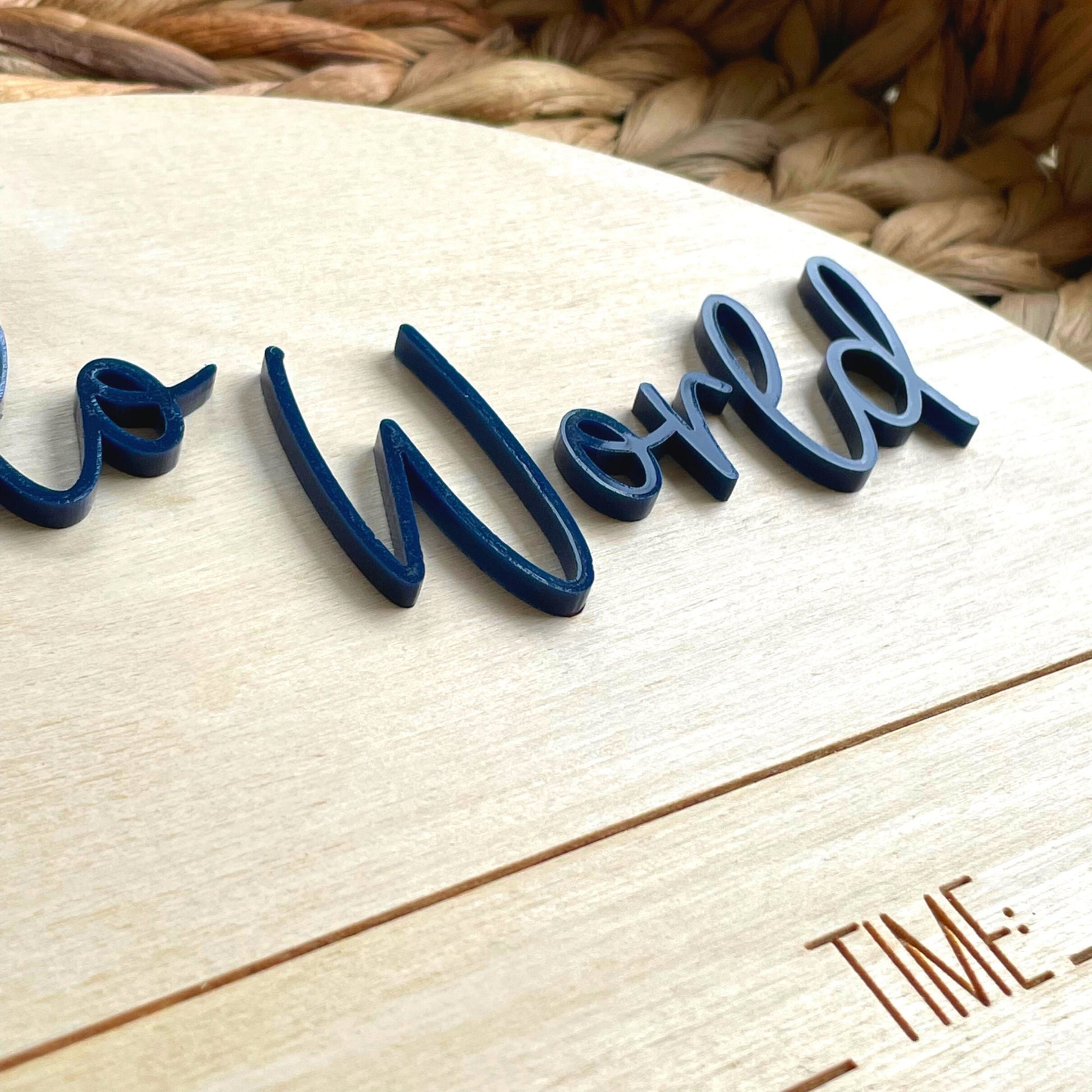 ~Custom Birth Stat sign where "Hello World" is replaced with the Baby's name in an acrylic color of your choice. If no color is selected Navy Blue will be used.