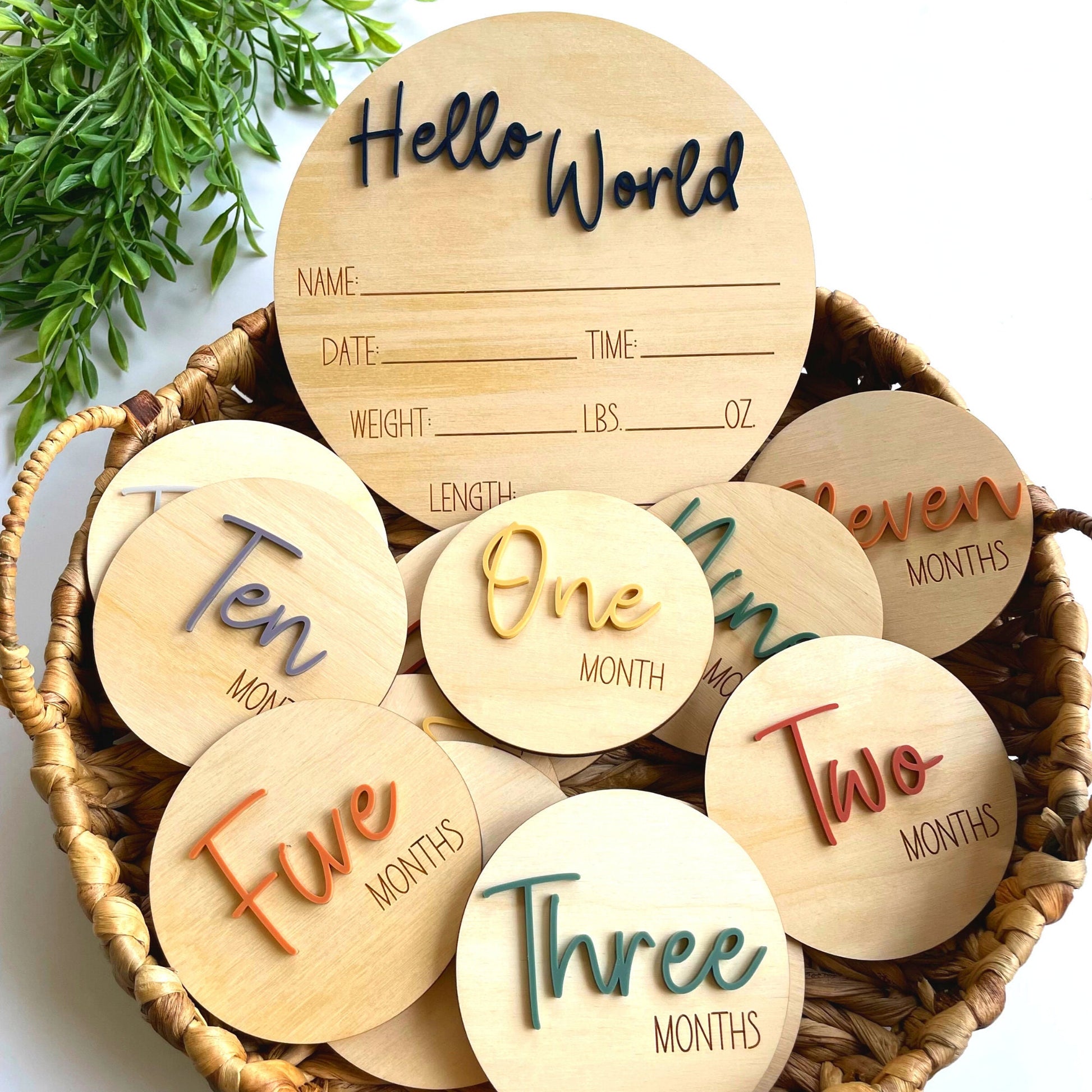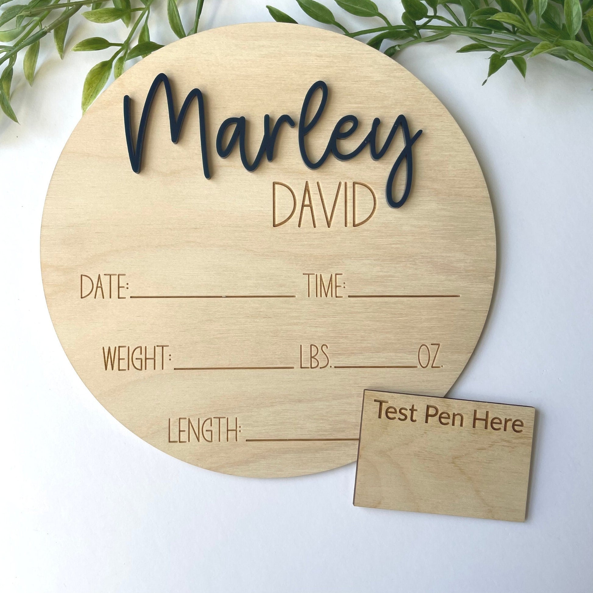 If you're looking for a special way to remember your baby's arrival, our Wood Baby Birth Stat Sign is the ideal choice. This long-lasting and attractive heirloom piece is customized with your baby's name and private details about his or her birth, such as the birthdate, weight, and time. It's the perfect addition to those first memorable photos of your child. Available as a stand alone item or it can be paired with our milestone sets and baby name signs.