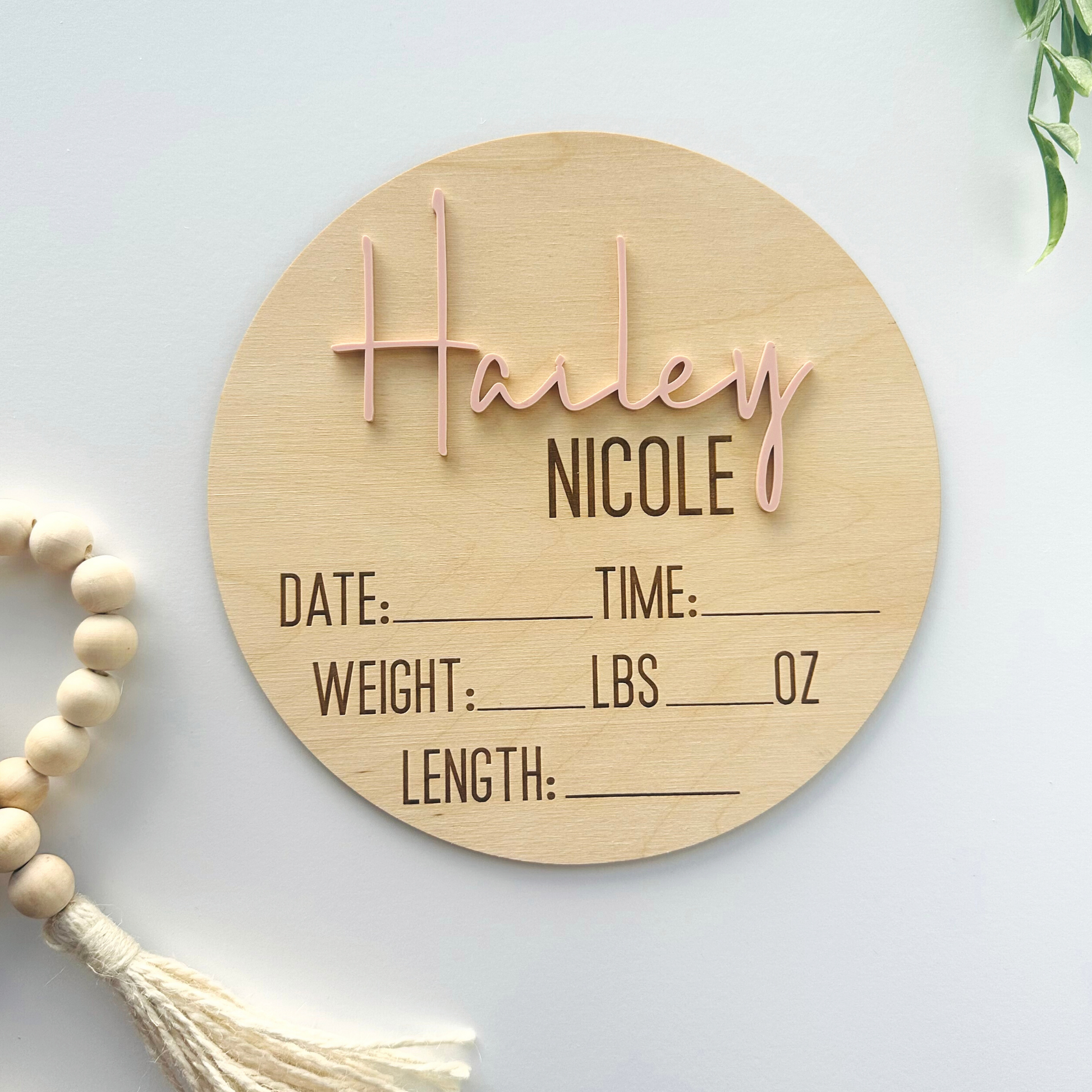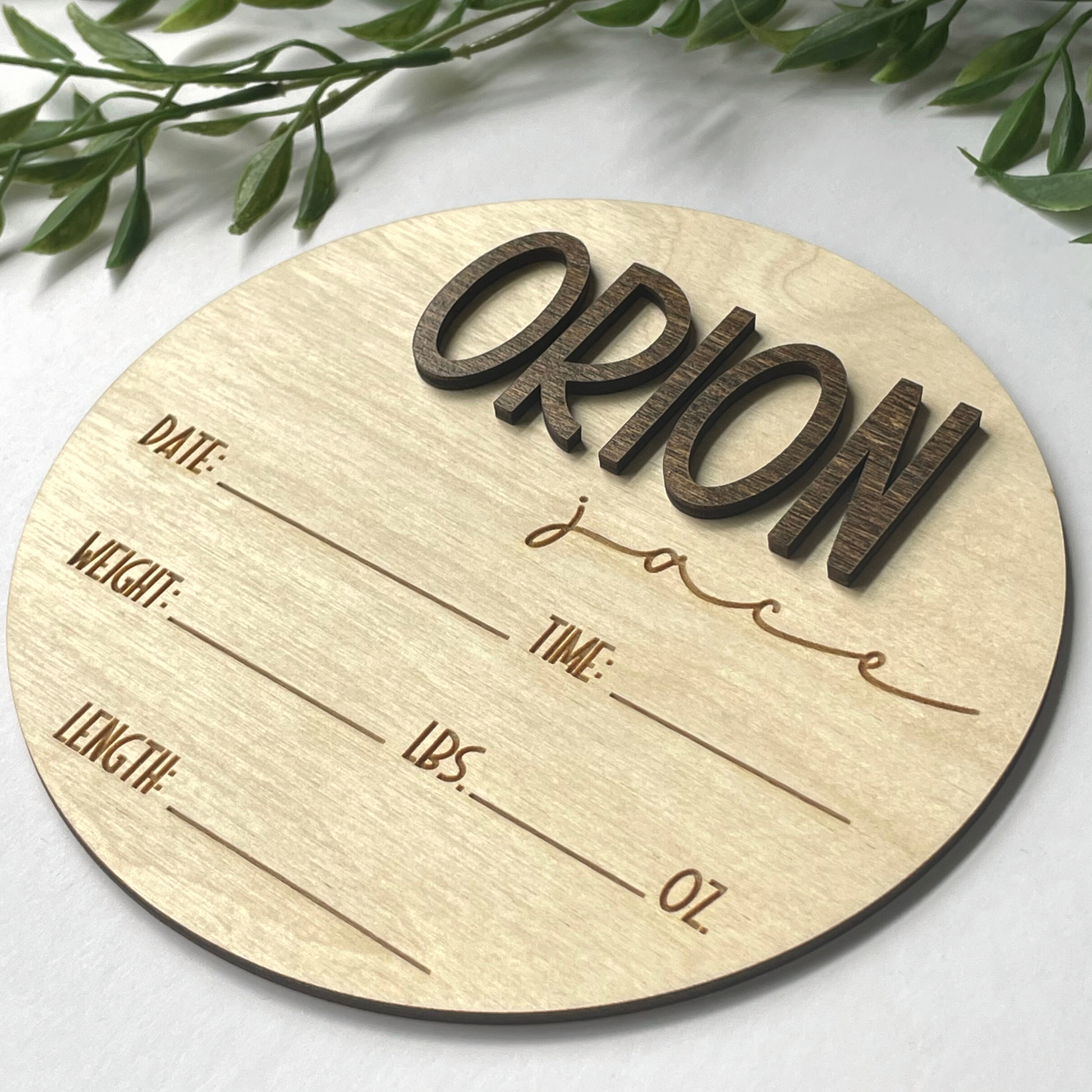 Welcome baby to the world with our beautiful wooden birth announcement sign! These signs are the perfect way to celebrate your new arrival and share their birth statistics with family and friends. Available in 5, 6, 7, and 8 inch sizes, you can choose the perfect size to fit your home decor or nursery.