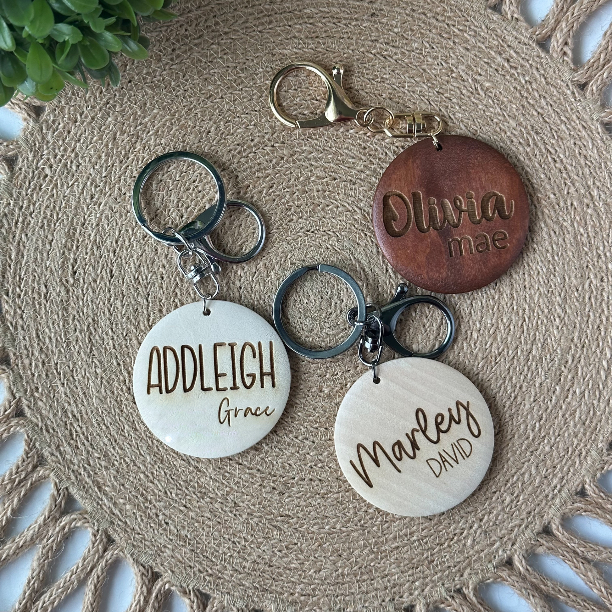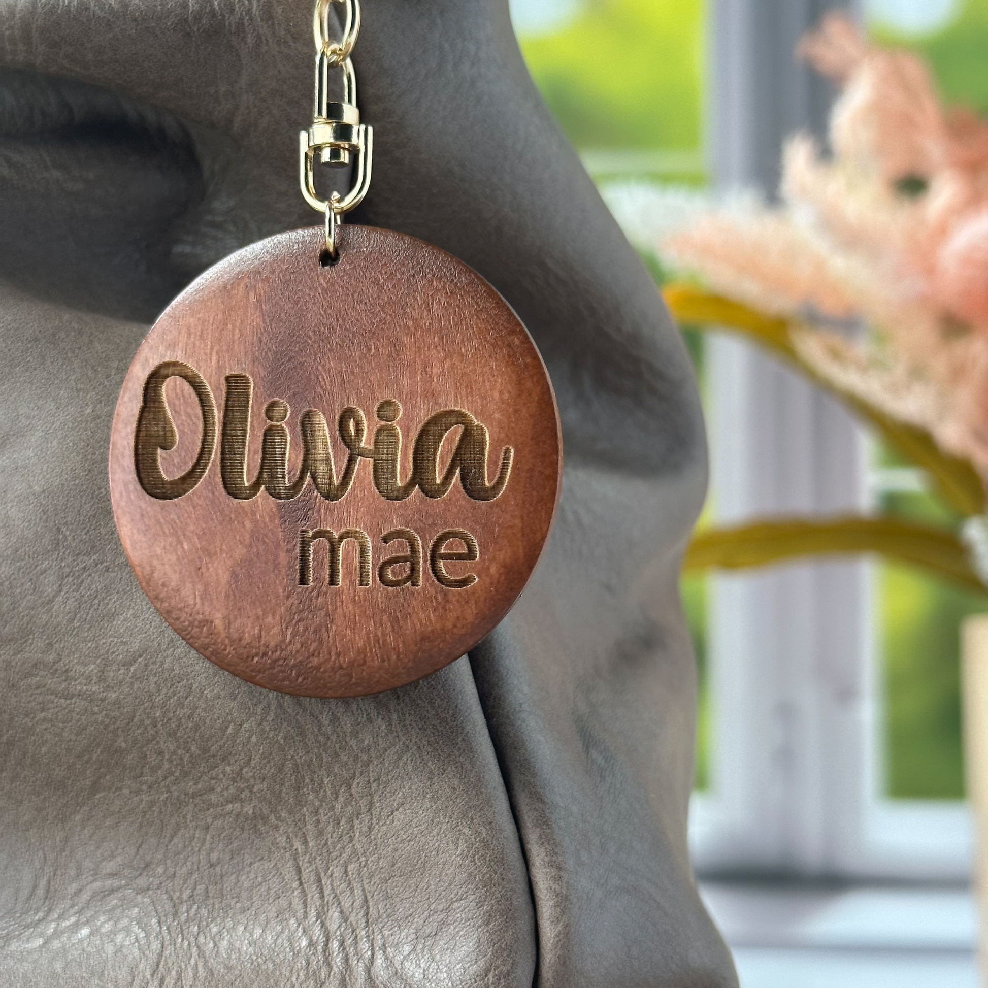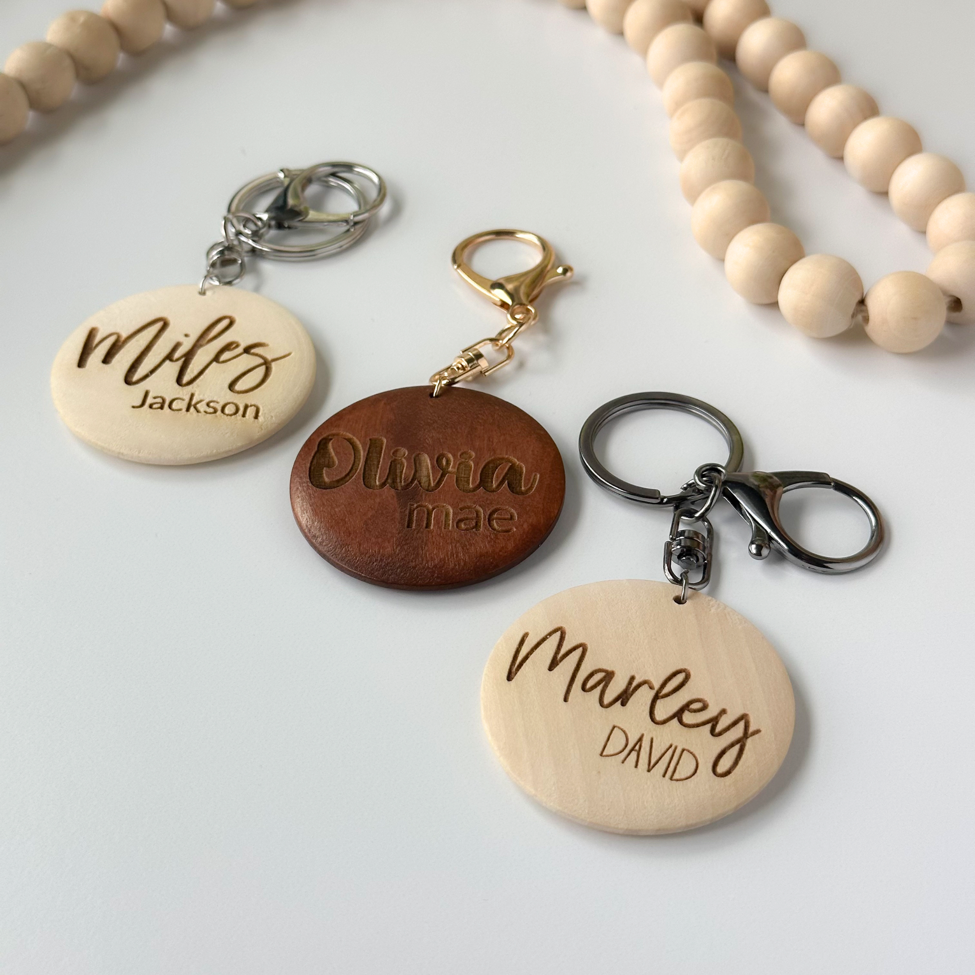 Introducing our 2 inch round disc keychain, the perfect accessory for that stylish diaper bag. This keychain is the perfect way to add a special touch to your bag and coordinate with our line of baby name signs and milestone sets. These tags are the perfect size to easily identify your little one's diaper bag from the rest in childcare or preschool settings. Plus, they come in a variety of fun fonts and clasp colors to match your baby's style and personality.