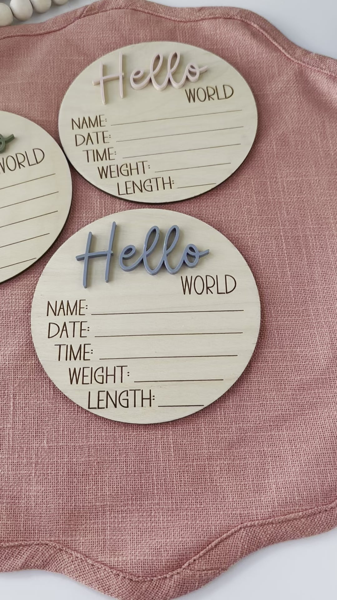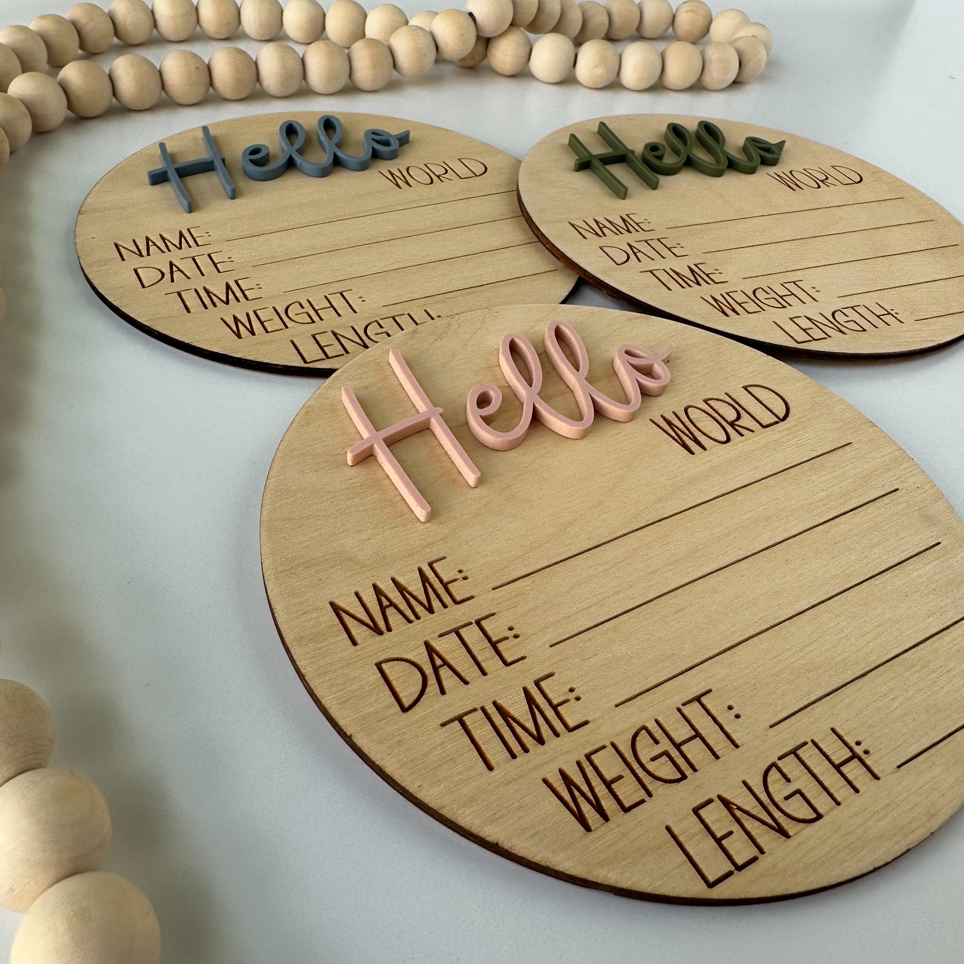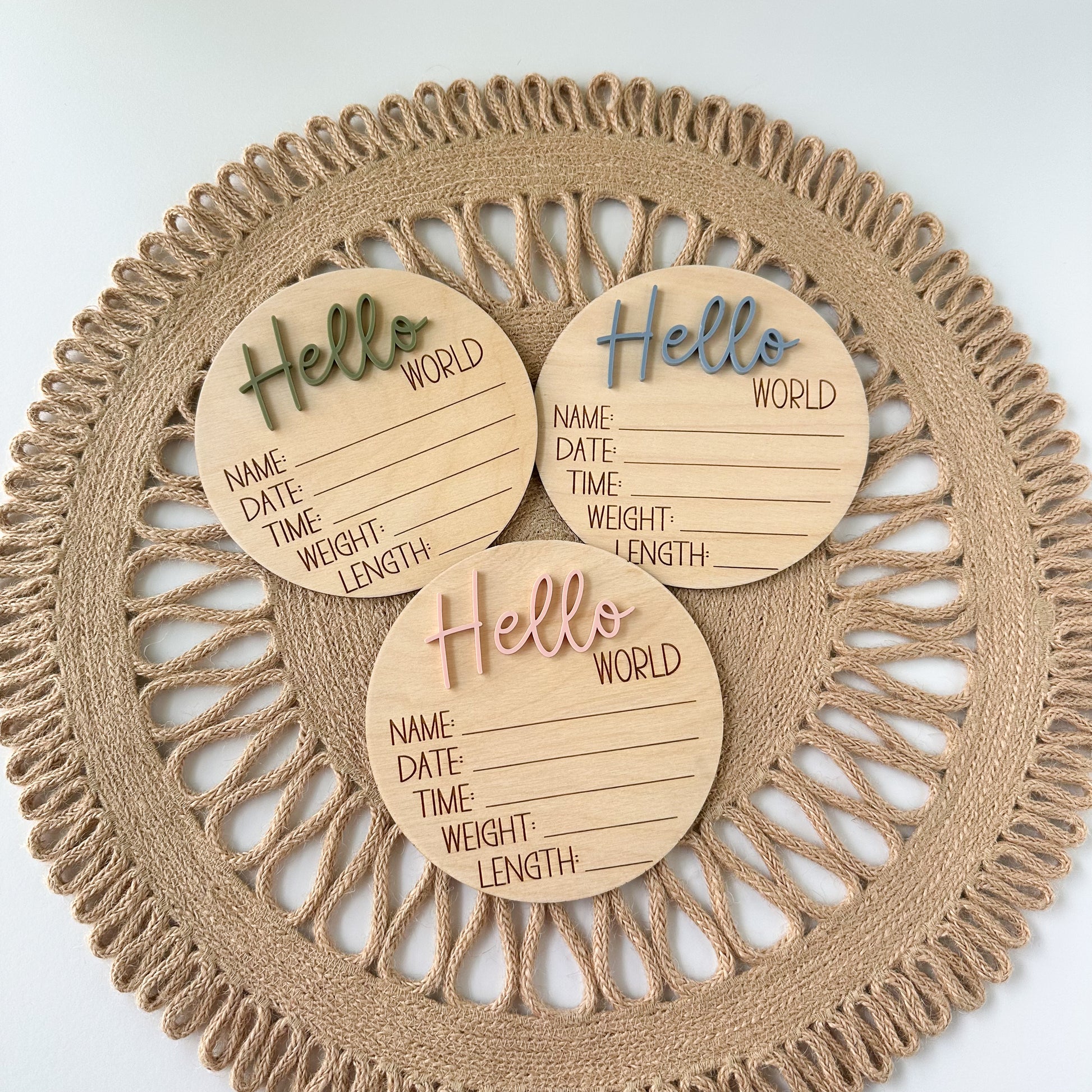 Order your 5" birth announcement sign with "Hello World" today and celebrate your new arrival in style.