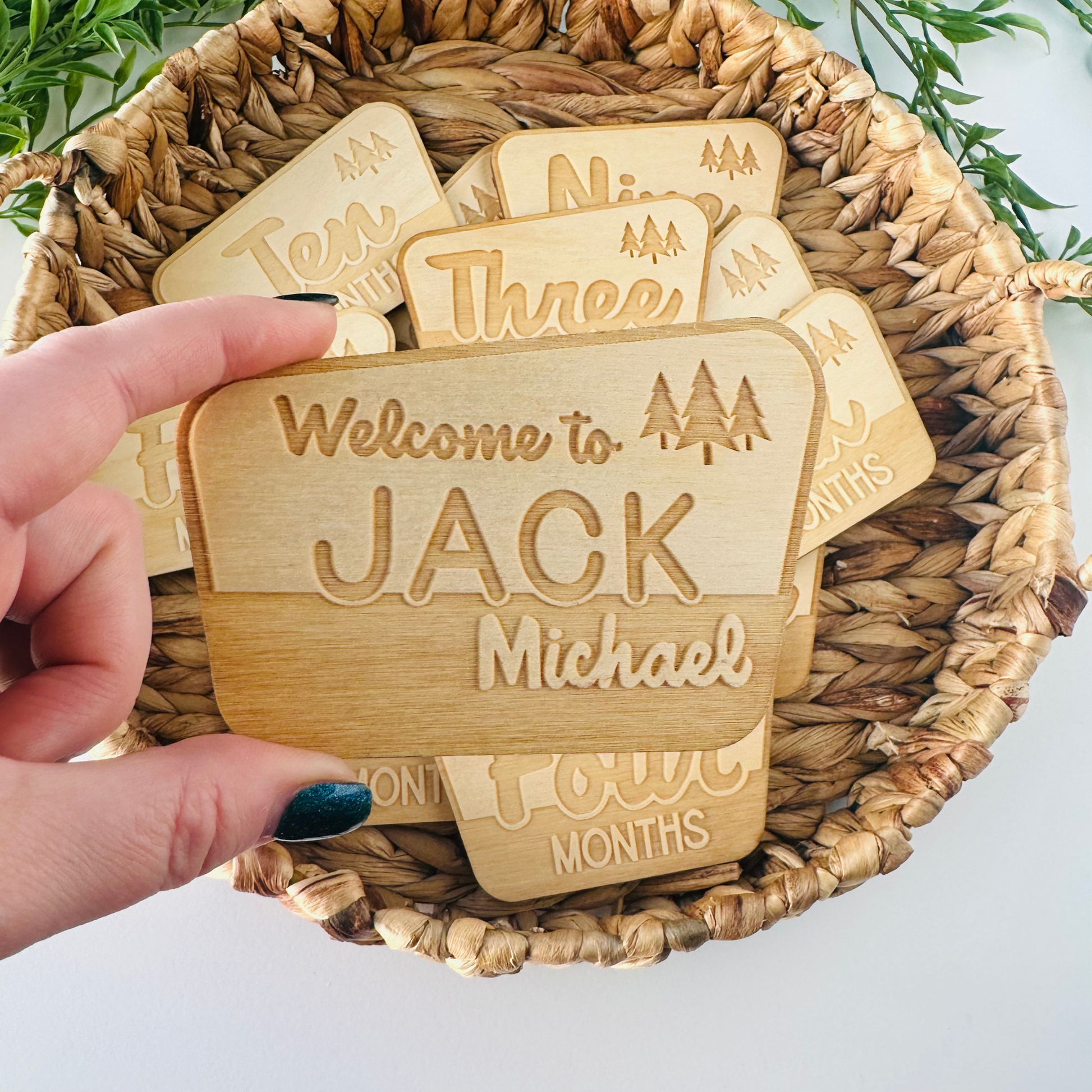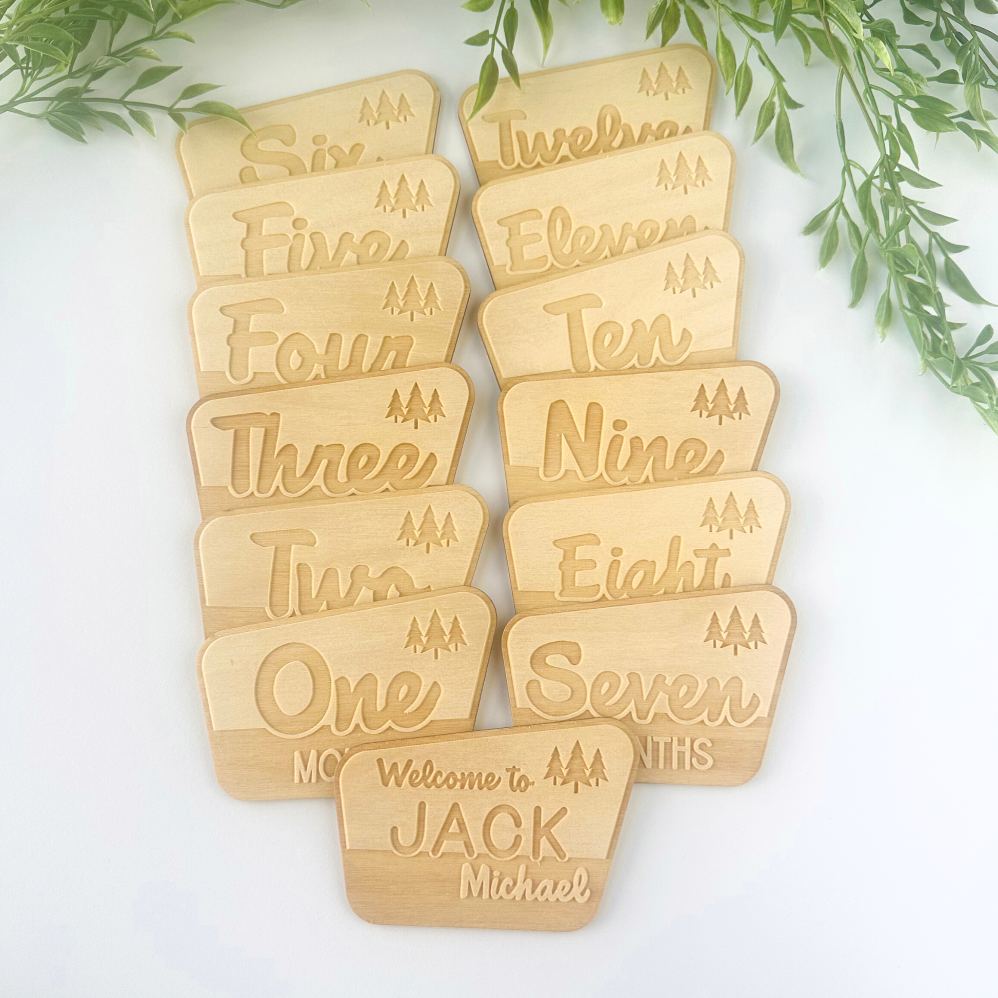 Ordering is easy, simply choose which set you would like from the drop down menu- milestones only, or a milestone set with a coordinating name sign. If ordering a name please include it in the customization box exactly as you would like it written/ spelled. Mock ups are available upon request.
