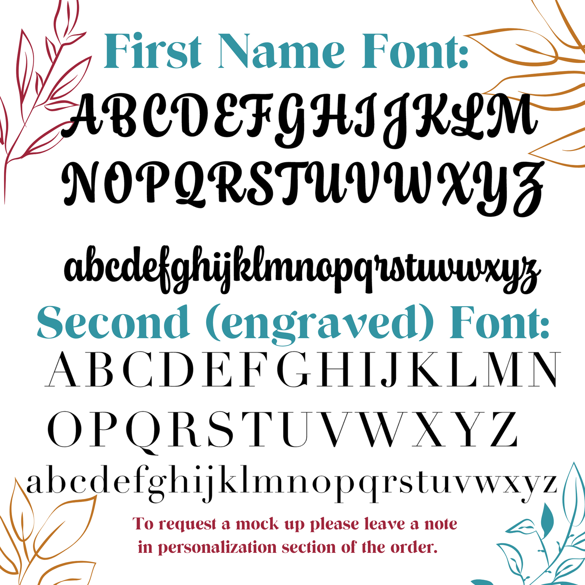 • First name in added in acrylic, the name will be white unless otherwise requested. Requests for the name color can be left in the personalization box with the name.