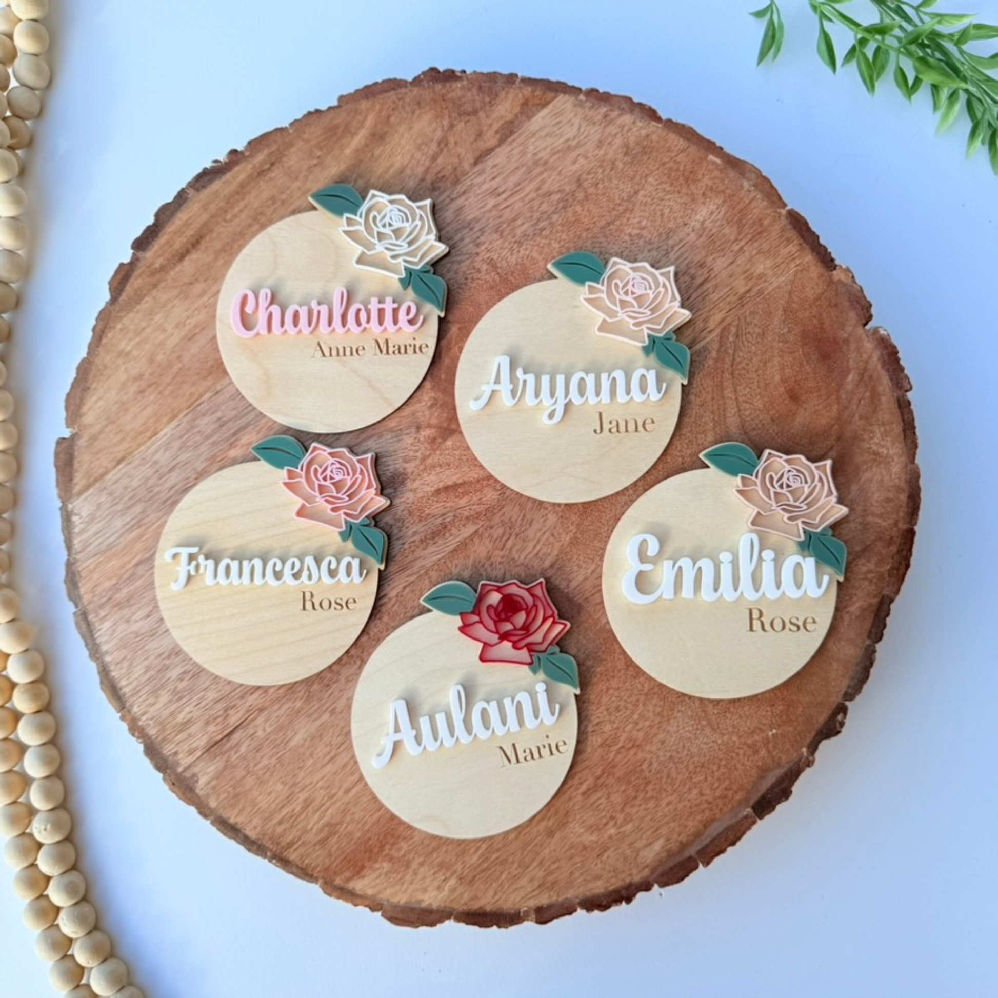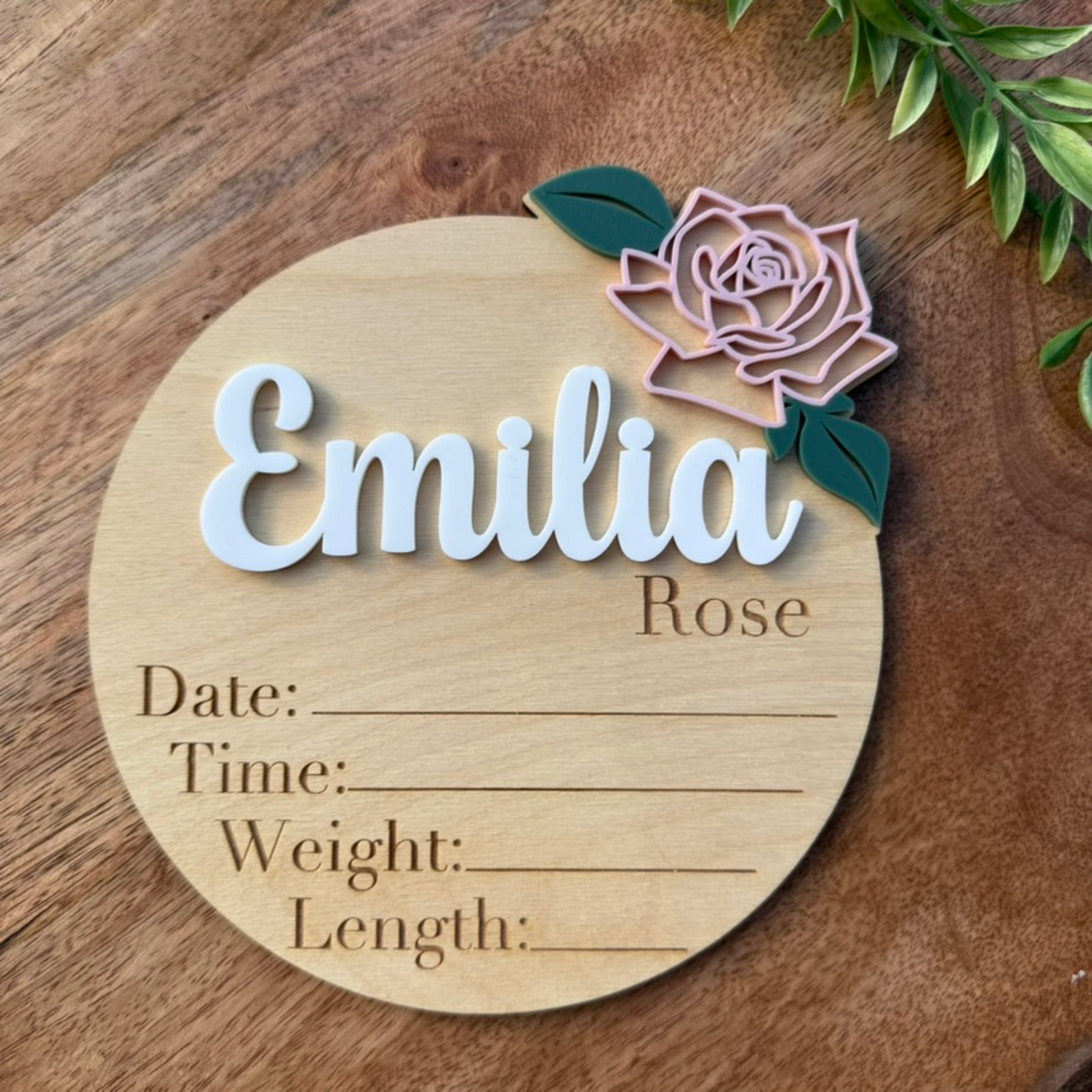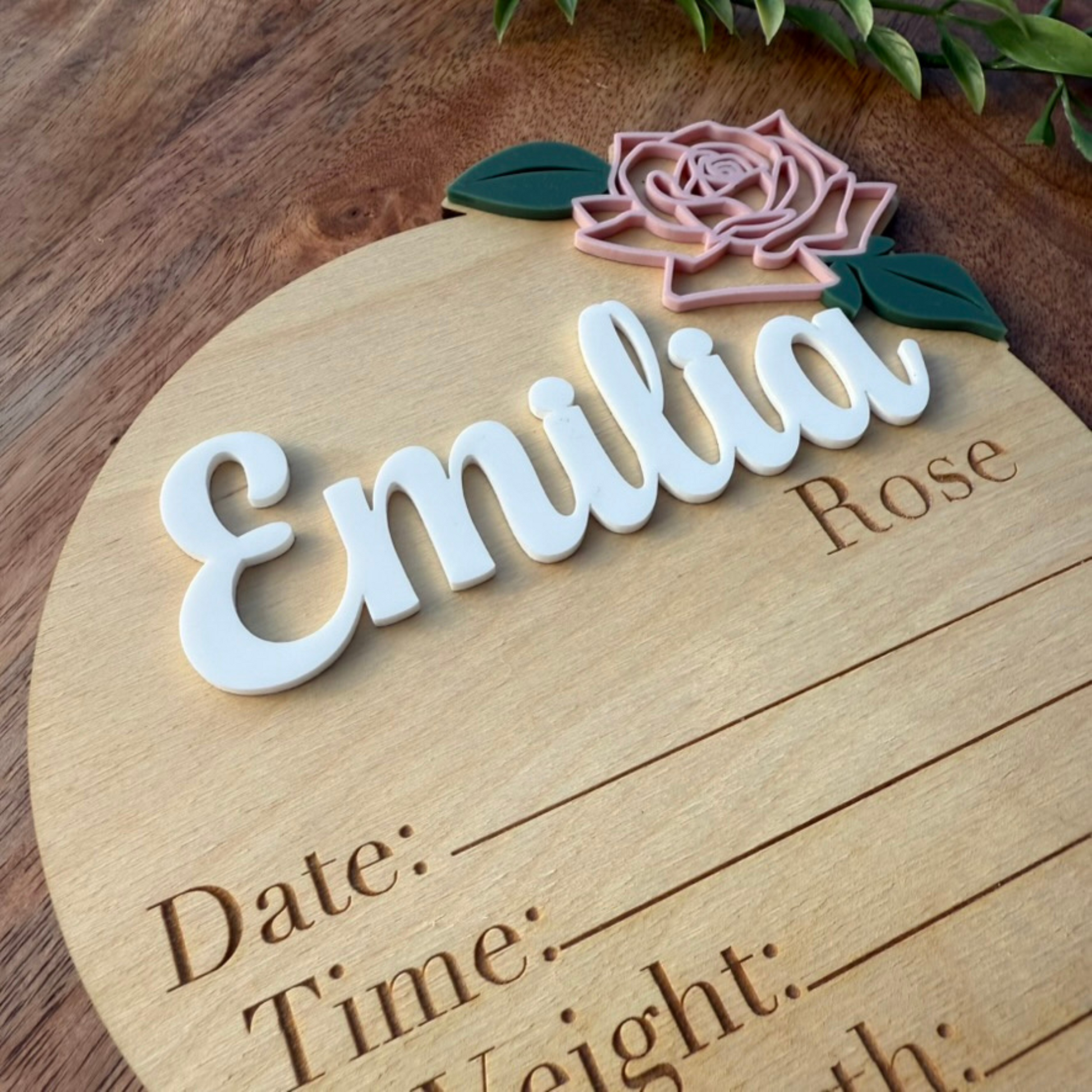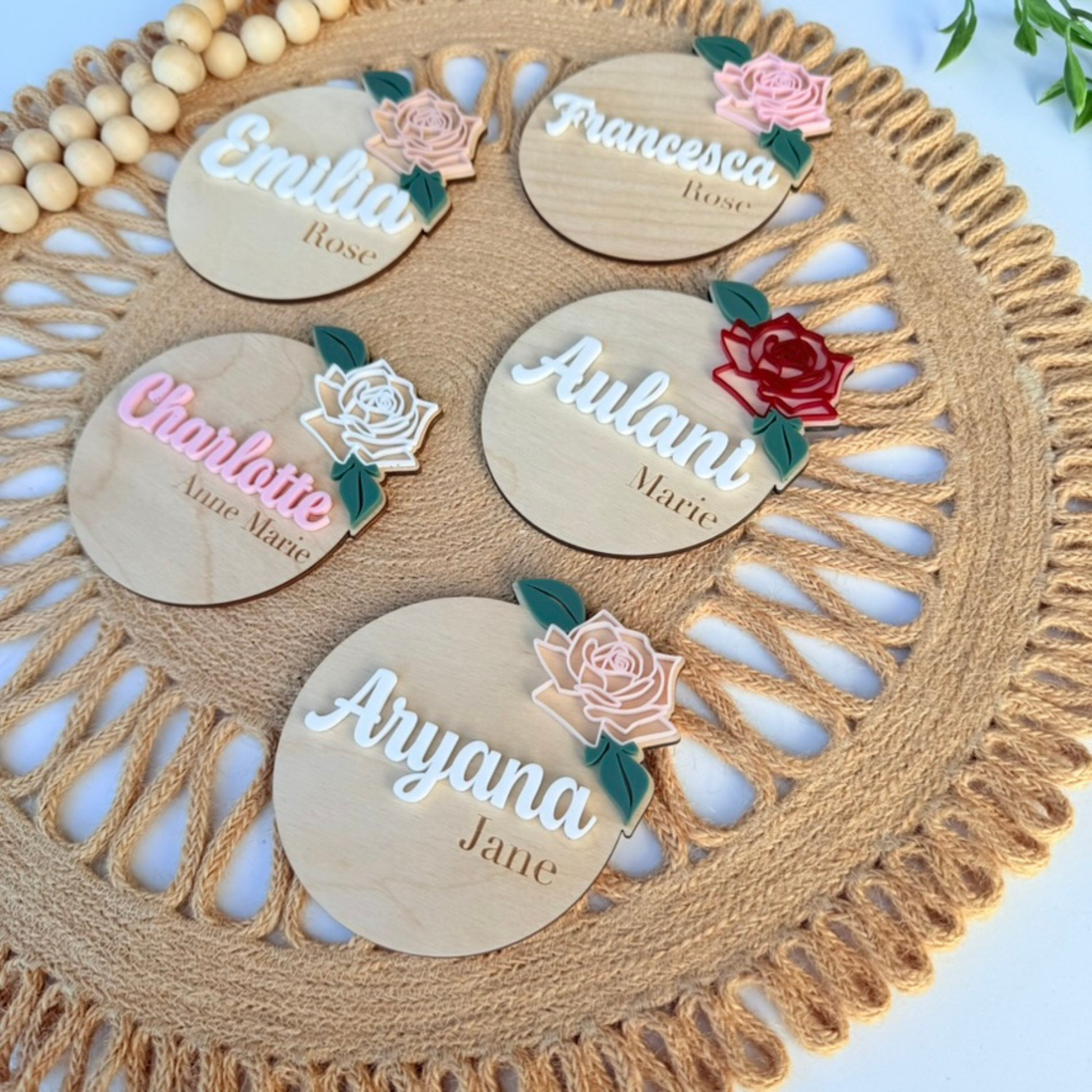 Whether you’re announcing a baby’s arrival or adding a sweet touch to their nursery, these custom rose-accented name signs are a beautiful way to celebrate your newest addition. Perfect for first photos, baby shower gifts, or keepsake displays—these wood and acrylic signs are made to capture the moment and last a lifetime.