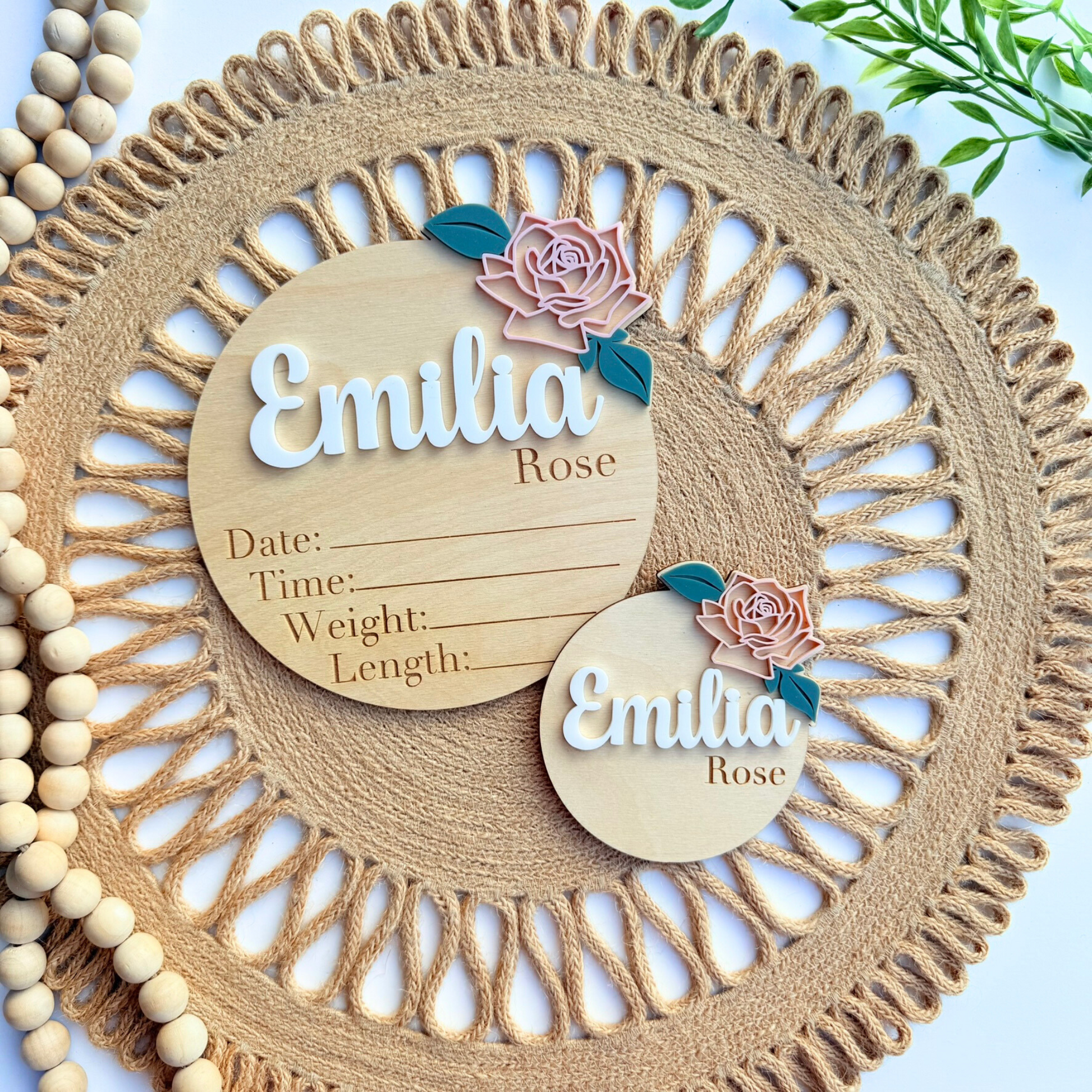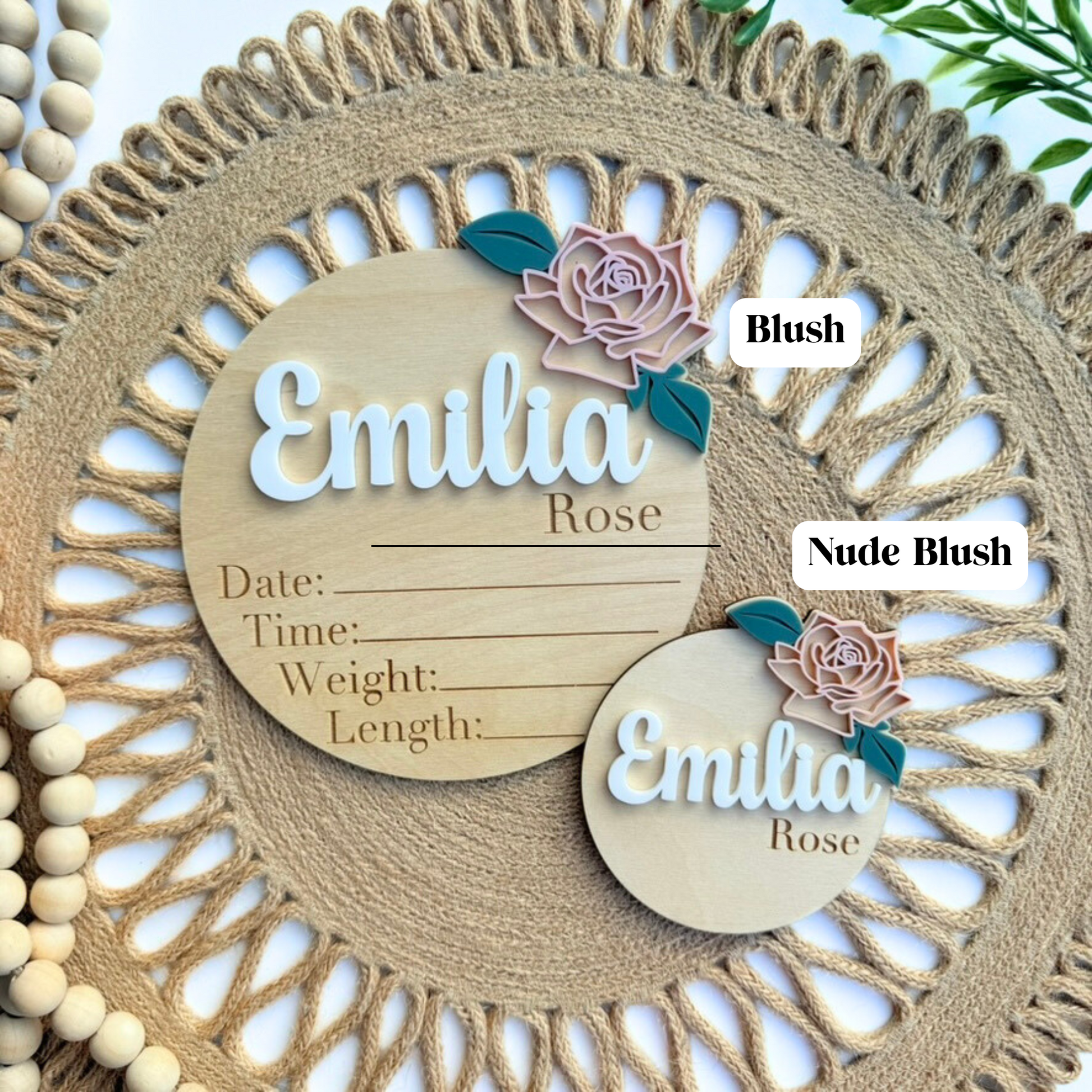 Rose Baby Announcement, Birth Stat and Name Sign for Baby Girl
