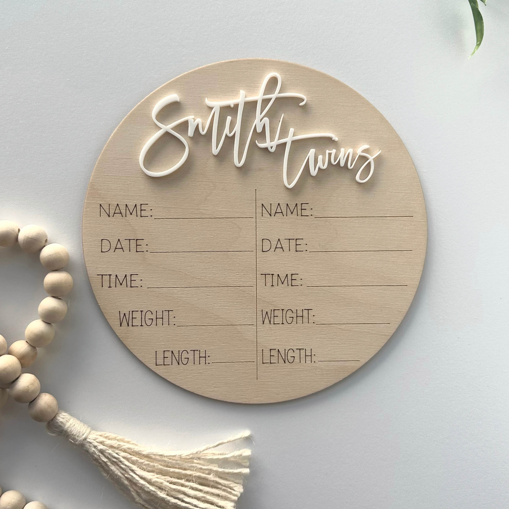 Whether you're looking for a unique and personalized gift for new parents, or a special keepsake to celebrate the arrival of your own twins, our 8 inch birth announcement sign is the perfect choice. Order now and create a beautiful and lasting memory of this special time in your family's life.